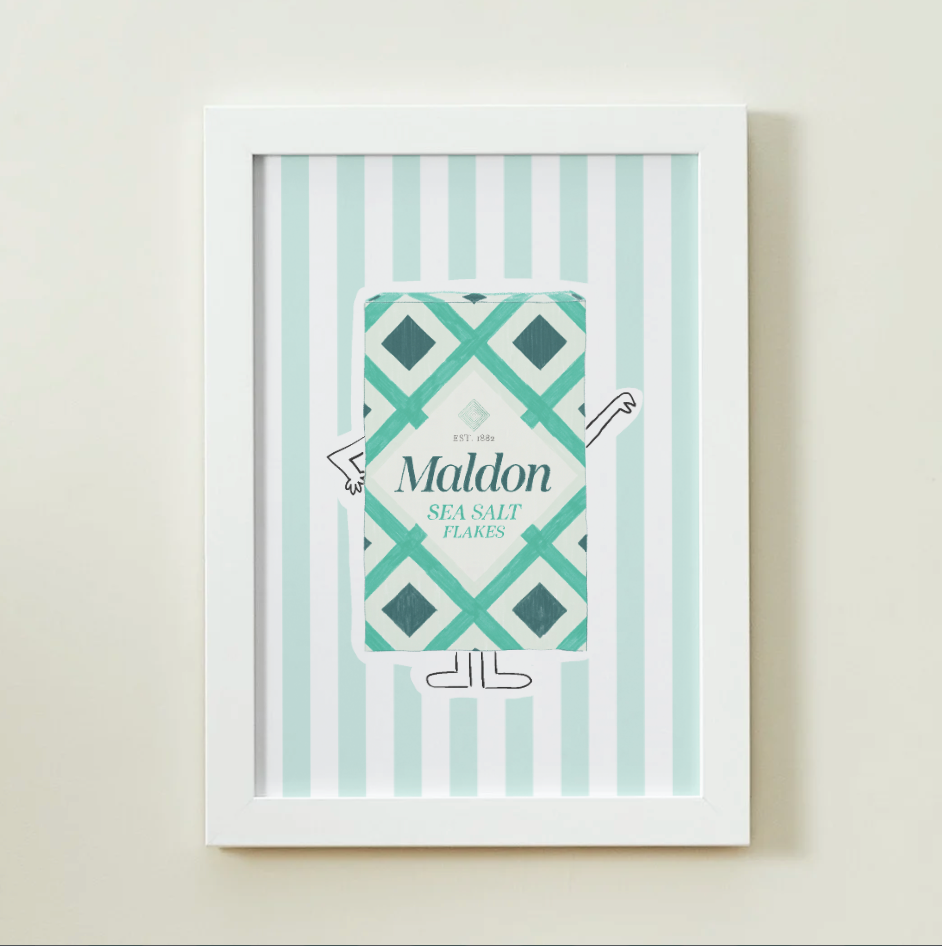 This illustrated print by Maisie's Munch celebrates Maldon salt and is available in a size of your choice with the option to frame. A unique and thoughtful present for all salt lovers, whether they use it for cooking or for Margaritas. This hand drawn artwork adds character to any home and wall art collection.